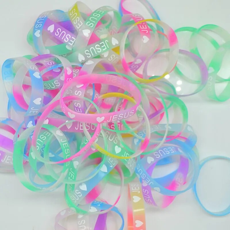 Introducing our Glow-in-the-Dark Silicone Bracelets - a radiant expression of faith and love. These bracelets come in 10, each designed with utmost care and attention to detail.