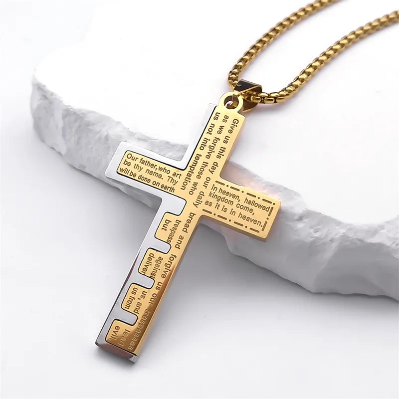 Cross Christian Church Prayer Necklace Men Stainless Steel