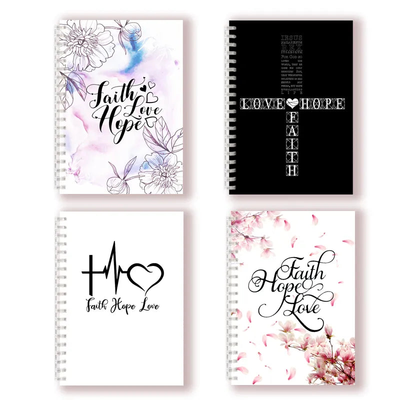 Description: Discover the perfect companion for your spiritual journey with our "Faith Hope Love" Christian Spiral Notebook from BeJeweled By Julie. This exquisitely designed notebook is more than just a writing pad; it's a beautiful expression of faith, hope, and love.