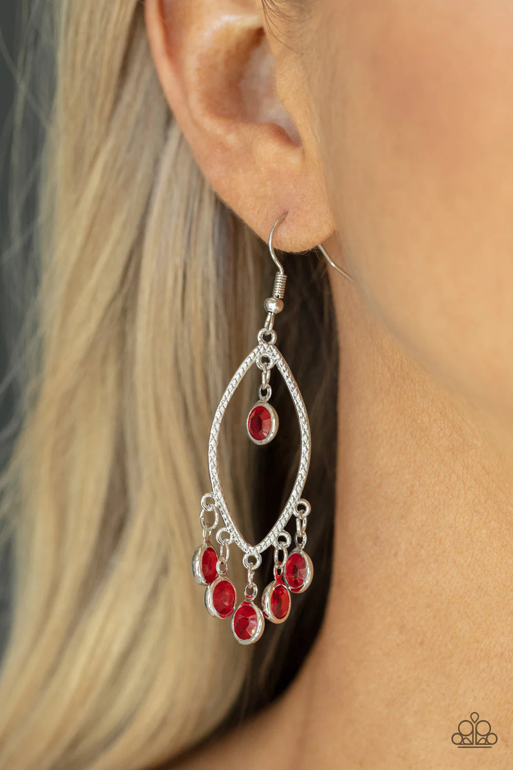 Paparazzi Earrings ~ Glassy Grotto - Red