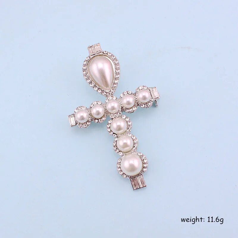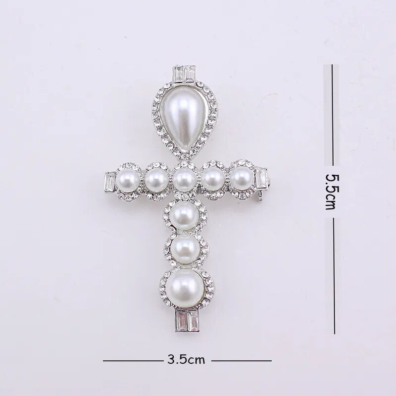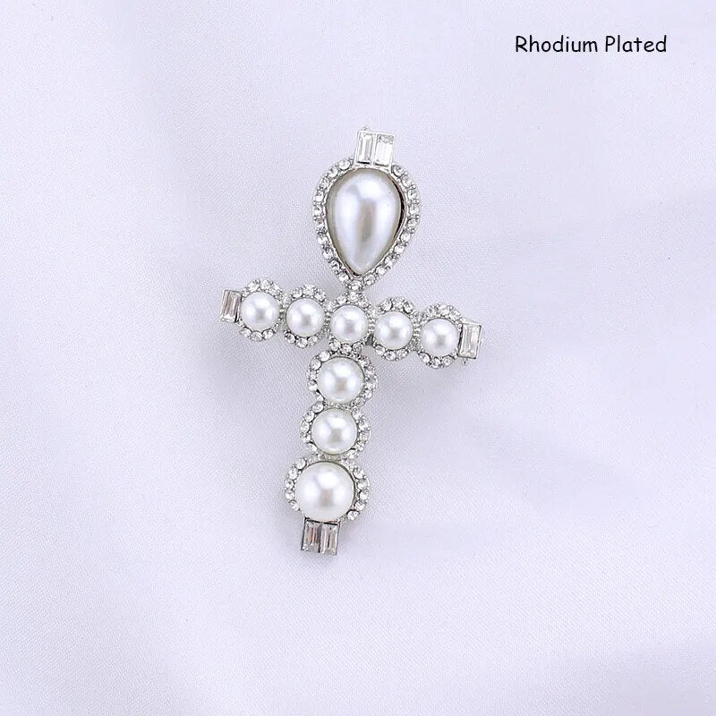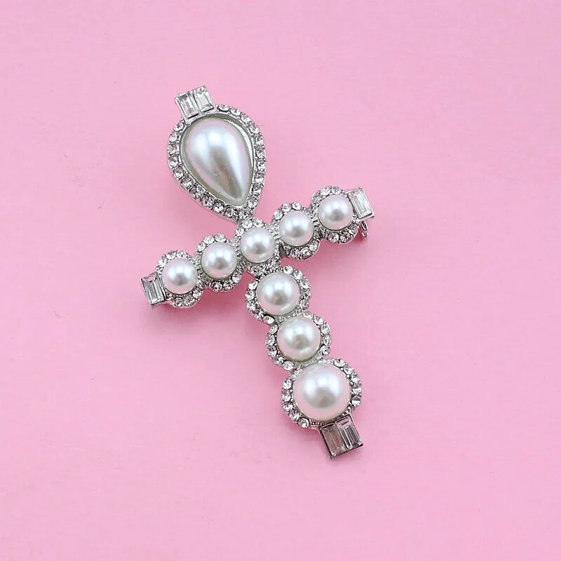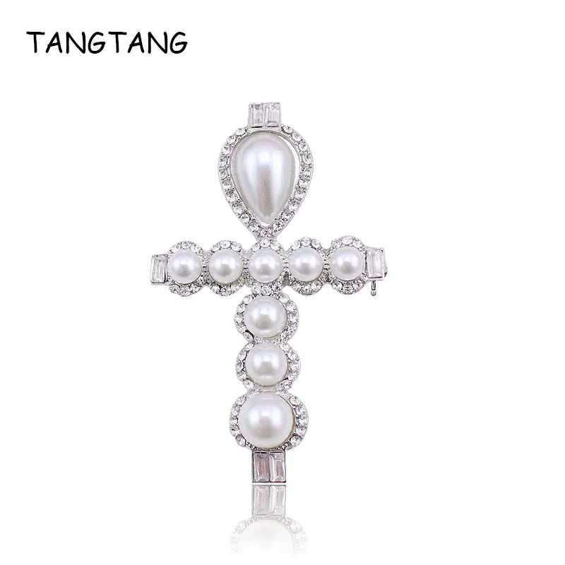 TANGTANG Cross Brooch Pearl Rhinestone Brooch Pin For Women Crystal Jewelry Pins Believe in Jesus Christian Gift Good Quality